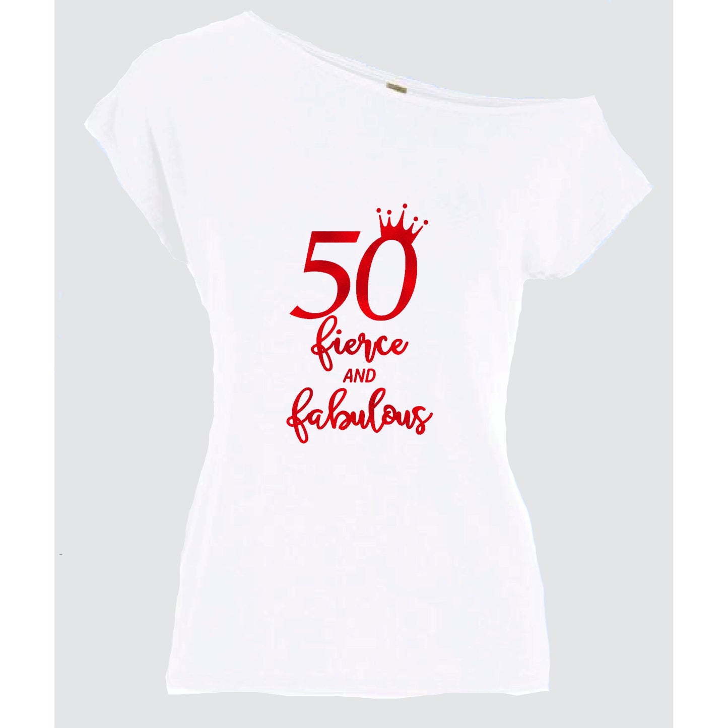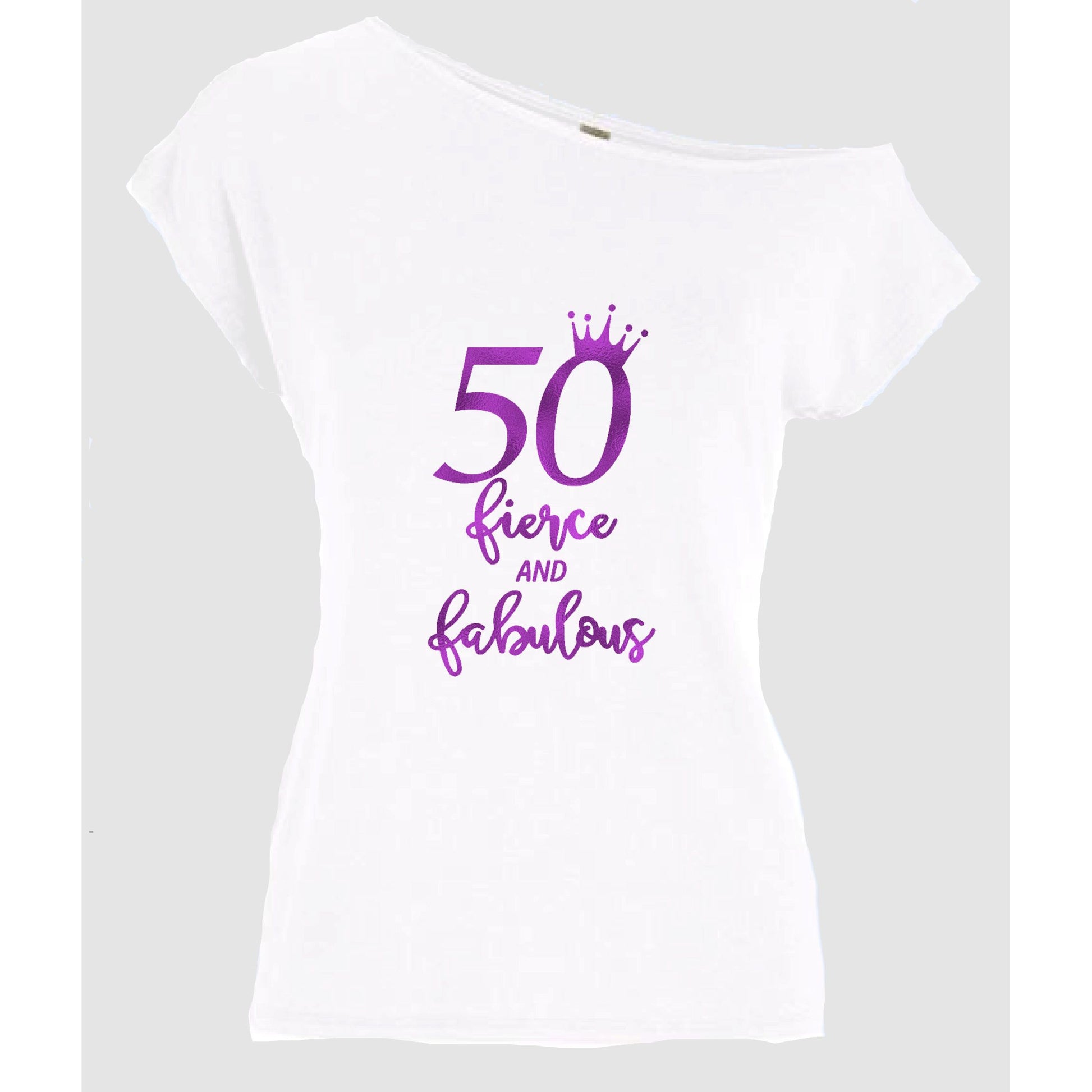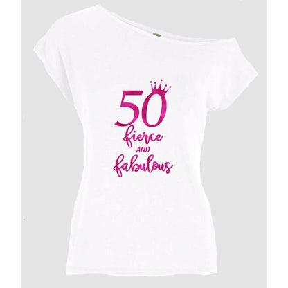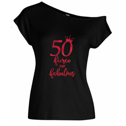 50 Fierce And Fabulous Off Shoulder Birthday T-Shirt