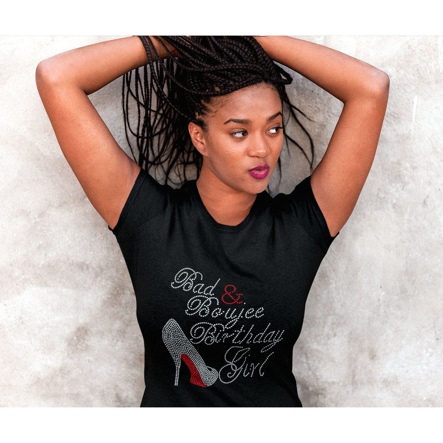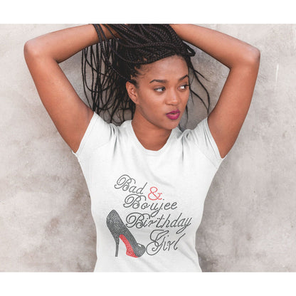 Rock the party or hit the town in style with our Bad and Boujee Birthday Girl Rhinestone T Shirt. Let the world know it's your special day with this must-have birthday outfit.