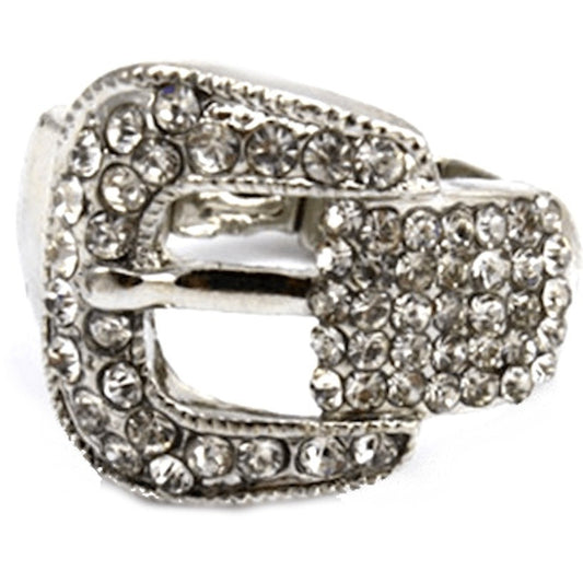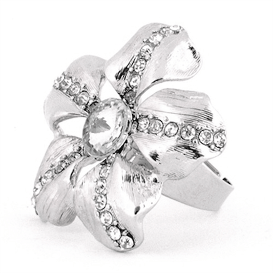 Silver Crystal Rhinestone Abstract Double Finger Ring