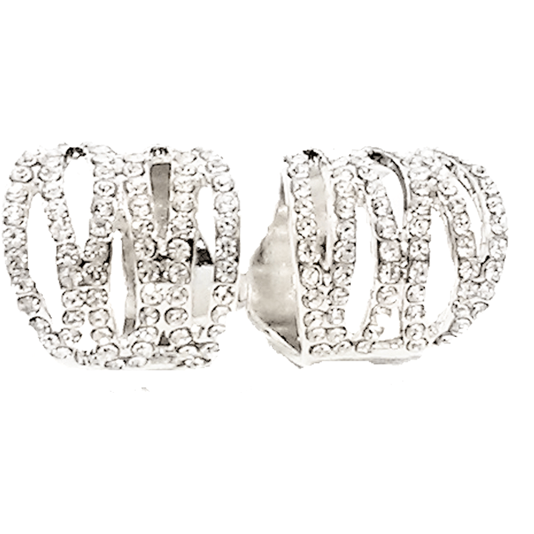 Fashionable and unique, 1 1/2 long silver crystal rhinestone double finger ring that has a beautiful and intricate design. It has two rings which allows it extend past the knuckle of your finger. The size and design of this ring creates a bling that will not go unnoticed.