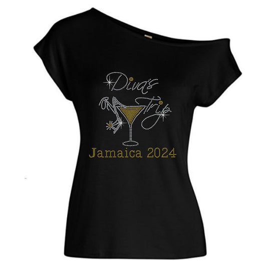 Divas Trip Personalized Rhinestone Off Shoulder Tee