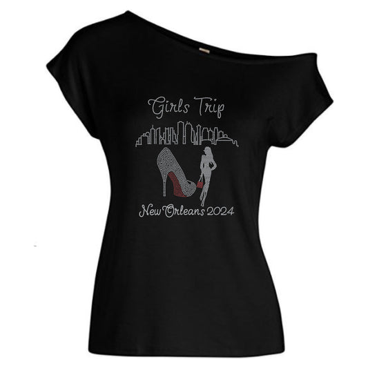 Girls Trip New Orleans Skyline Rhinestone Off Shoulder Tee