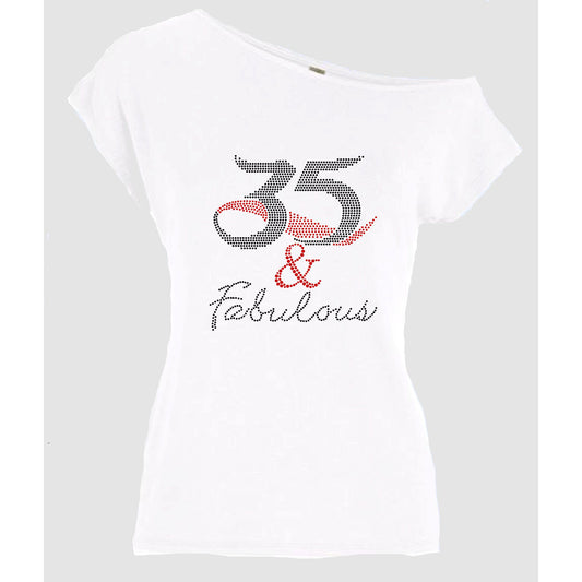 35 And Fabulous Rhinestone Off Shoulder Tee