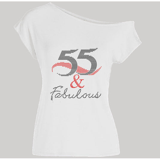 55 And Fabulous Rhinestone Off Shoulder Tee