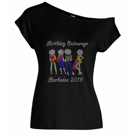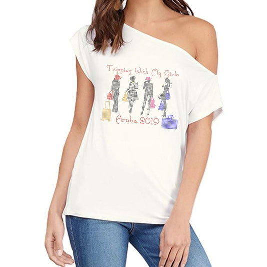 Tripping With My Girls Personalized Off Shoulder Rhinestone Tee