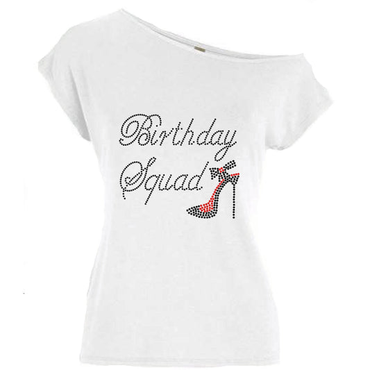 Birthday Squad Rhinestone Shoe Off Shoulder Tee