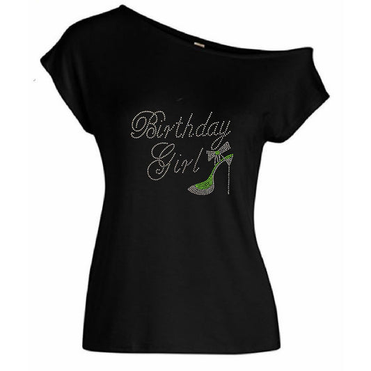 Birthday Girl Rhinestone Shoe Off Shoulder Tee
