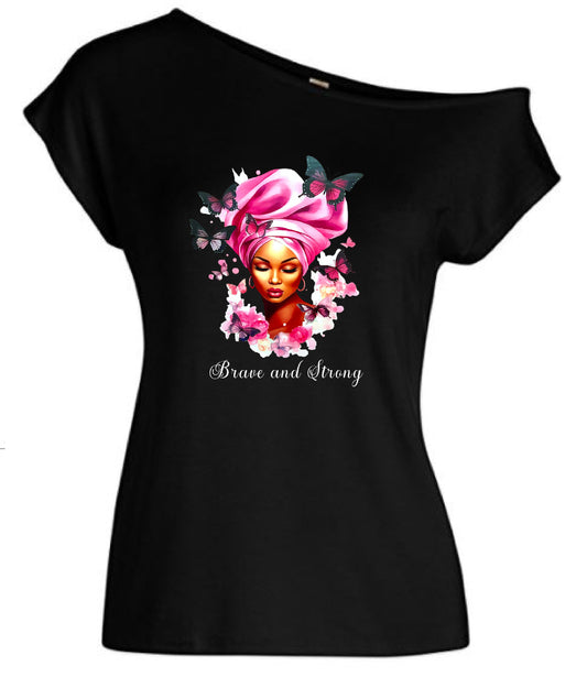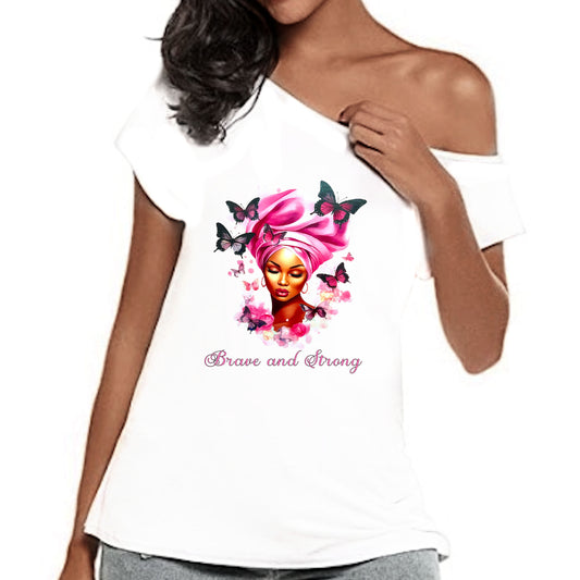 Faith Love Hope Breast Cancer Awareness Rhinestone Off The Shoulder Tee