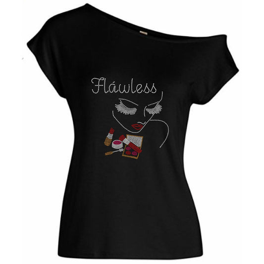 Makeup Artist Rhinestone Off Shoulder Tee
