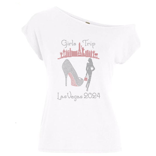 Girls Trip Las Vegas Skyline Rhinestone Off Shoulder Tee