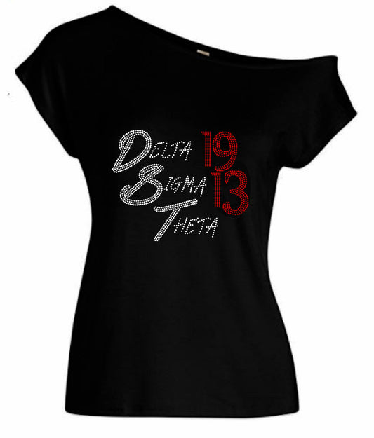 Delta Sigma Theta 1913 Rhinestone Off Shoulder Tee