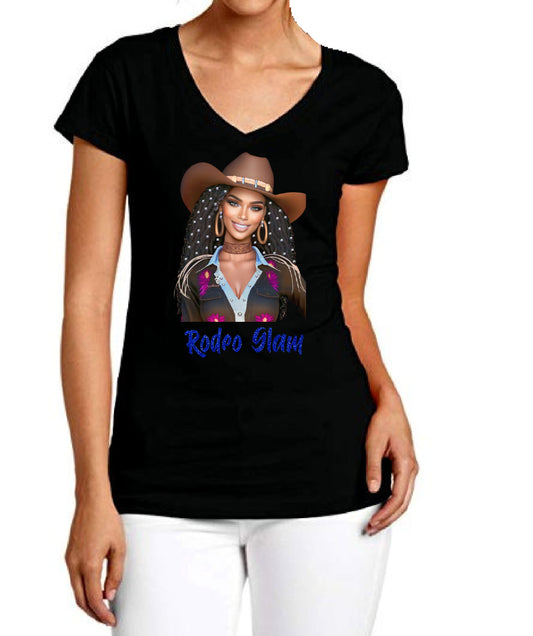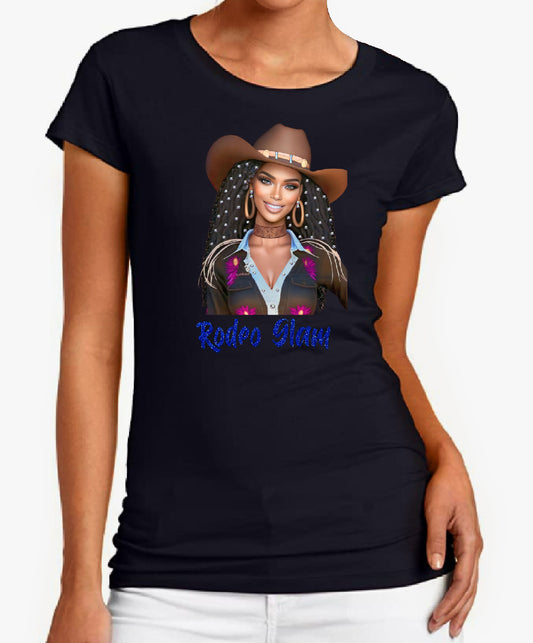 Rodeo Glam Black Cowgirl Glitter & Rhinestones T-Shirt