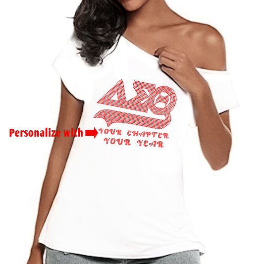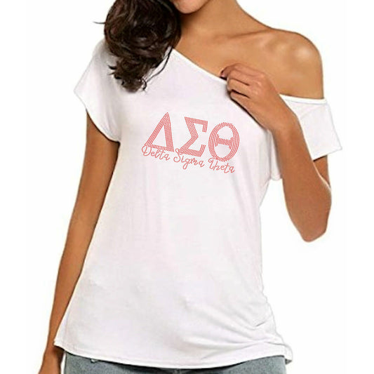 Delta Sigma Theta Rhinestone Greek Letters Off Shoulder Tee