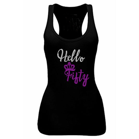 Hello 50 Rhinestone Birthday Tank Top