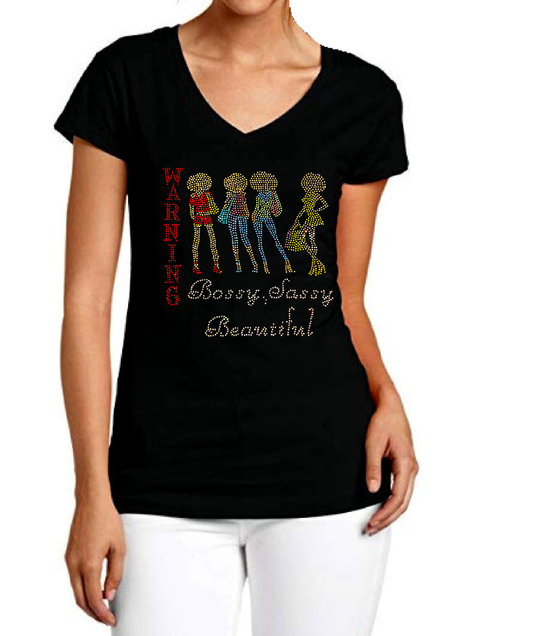 Afro Girl Group Bossy,Sassy, Beautiful Rhinestone Tee