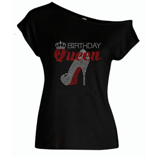 Birthday Queen With Crown Rhinestone Off Shoulder Tee