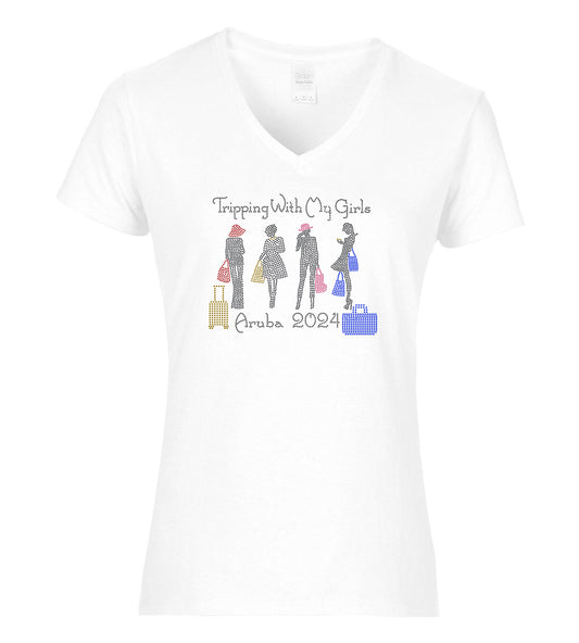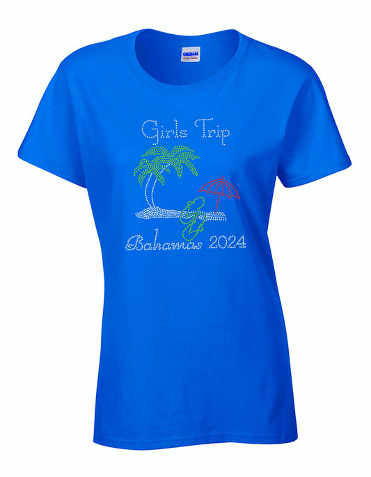 Girls Trip Beach Style Personalized Rhinestone Tee