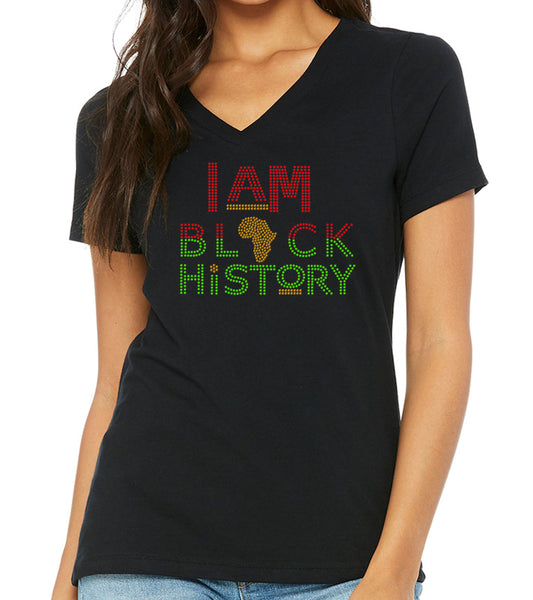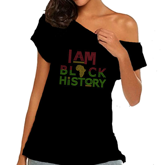 I Am Black History Rhinestone Off Shoulder T Shirt