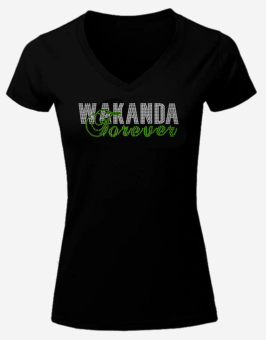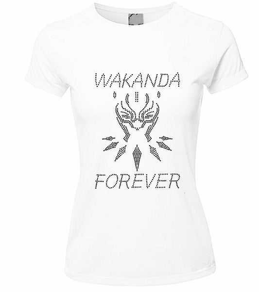 Wakanda Forever Womens Warrior Rhinestone Tee