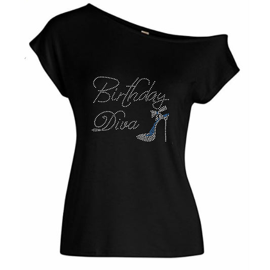 Birthday Diva Rhinestone Off Shoulder T Shirt