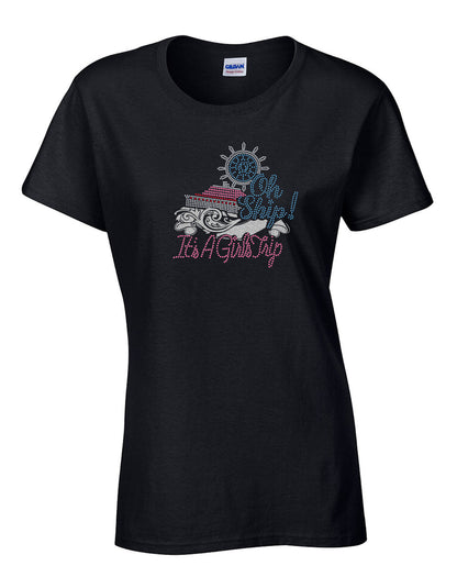 Oh Ship It's A Girls Trip Rhinestone Glitter T-Shirt