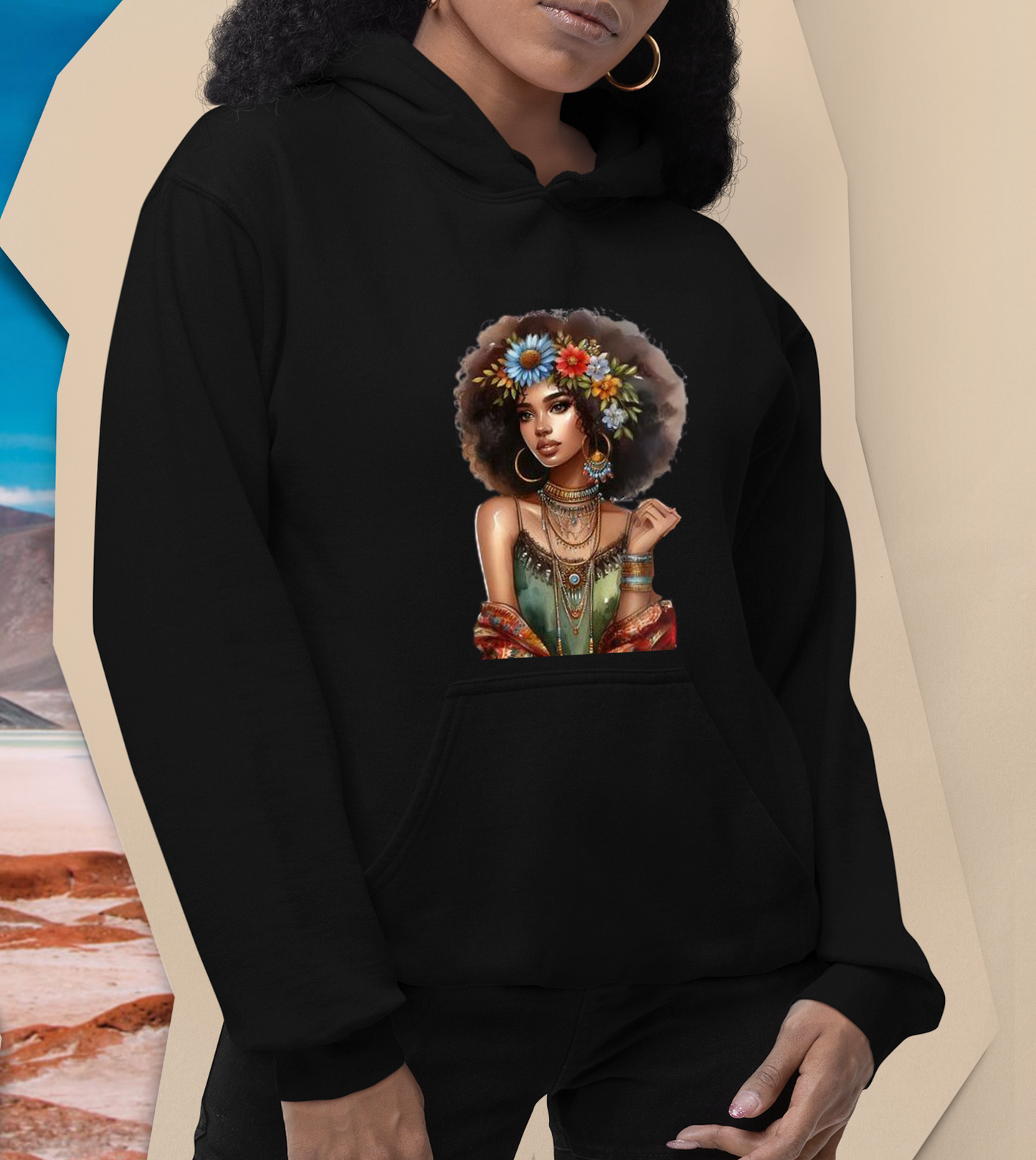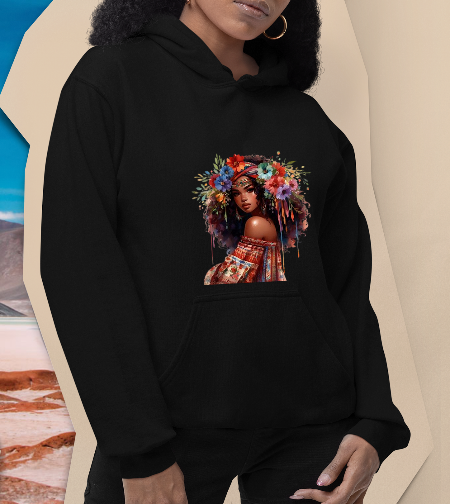 Afro Girl Hoodie Sweatshirt featuring 5 different beautiful afro women Made with high-quality materials and designed with 5 unique beautiful afro women, this hoodie is a perfect addition to your wardrobe. Show off your love for diversity and culture while staying warm and comfortable.