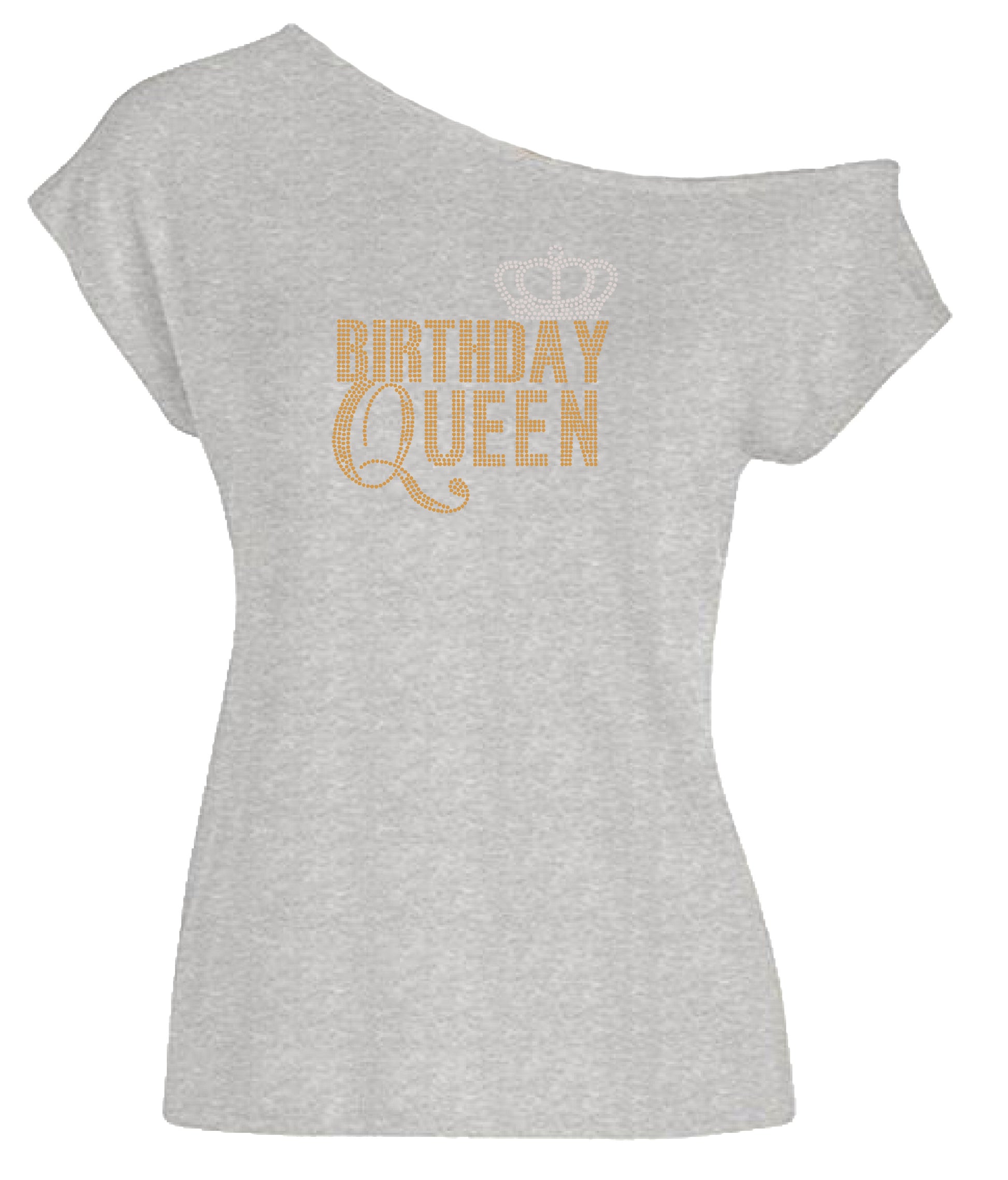 Be the center of attention on your special day! Celebrate your birthday in style with the Birthday Queen Rhinestone Off Shoulder T Shirt. With its shimmering rhinestones and vibrant colors, you’re sure to be the queen of the party! Whether it’s a quiet celebration or a night on the town, this fabulous shirt will let everyone know it’s your day to shine!