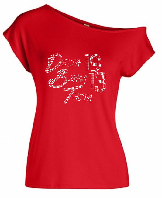 Delta Sigma Theta 1913 Rhinestone Off Shoulder Tee