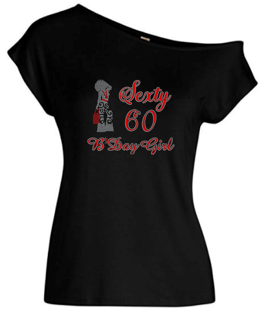 Sexty 60 Rhinestone B'Day Girl Off Shoulder Tee