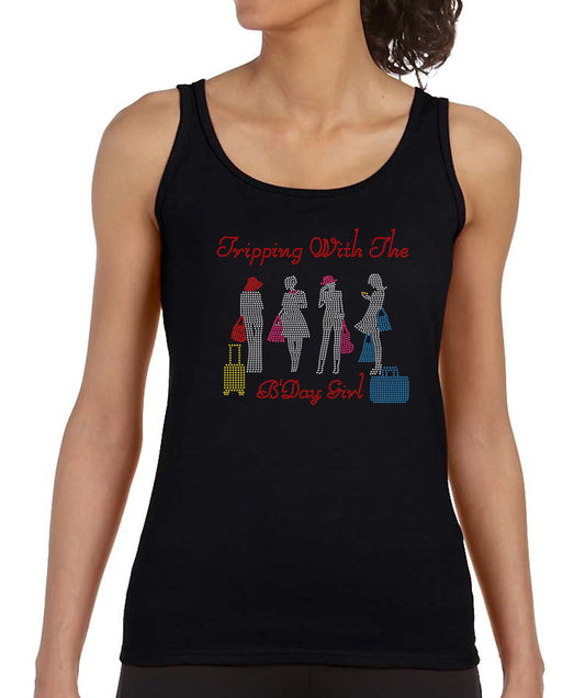 Birthday Trippin With My Girls Personalized Off Shoulder Rhinestone Tee